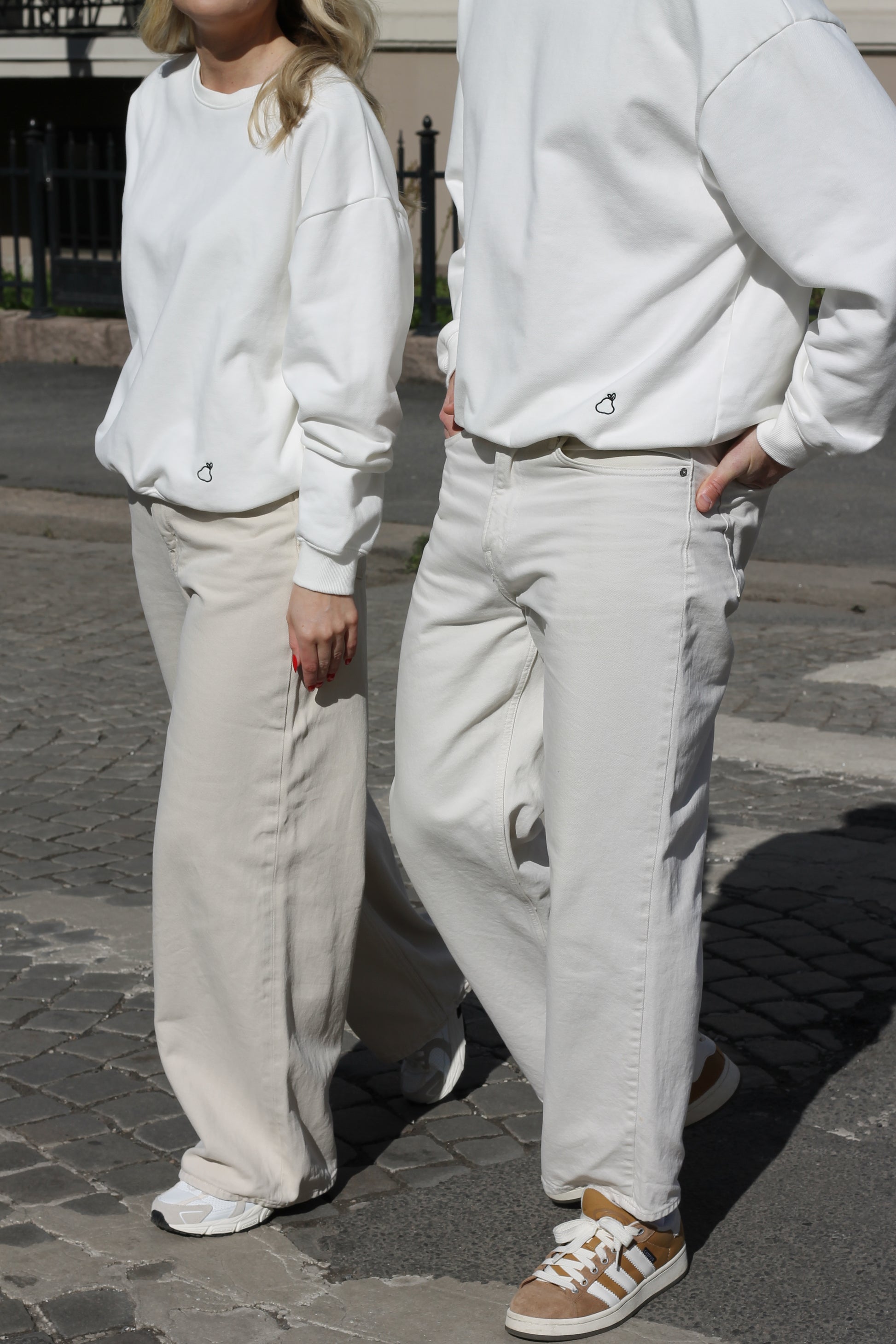 A classic boxy-fit crewneck with dropped shoulders, true to size, and made from a soft durable 85% cotton and 15% polyester blend, 460 GSM